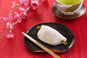 平安時代の宮中行事「歯固めの儀」に由来する、美しい正月のお菓子。明治時代になり茶道裏千家が初釜のお菓子として出すことを許され、正月のお菓子として全国の和菓子屋で作られるようになりました。うっすらとピンクが透けて見える、幸せいっぱいのお菓子でもあります。
