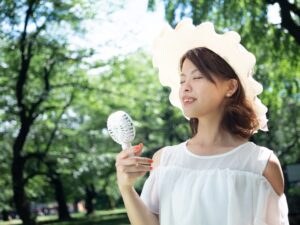 若い女性が、手に小さな扇風機を持っている姿を数年前からよく見かけるようになりました。