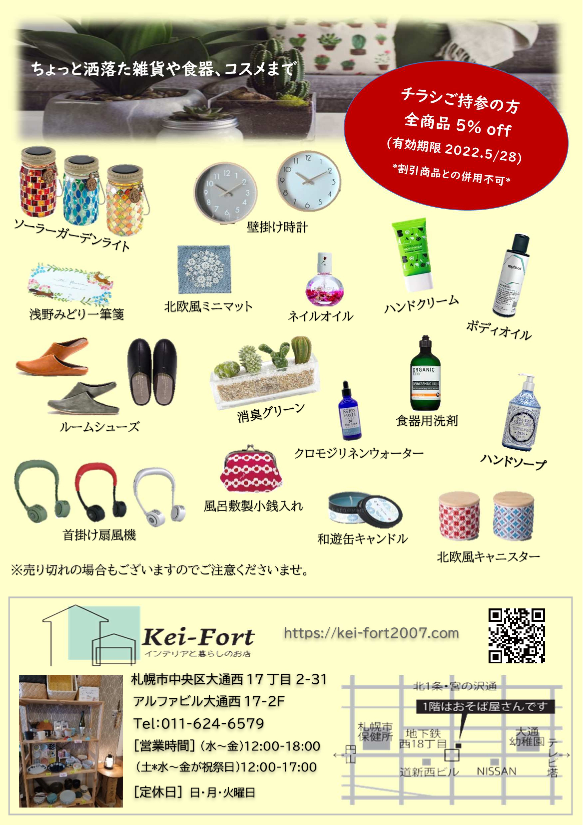 ご来店時に下記チラシ画面をご提示いただいた方にも5% off とさせていただきます。